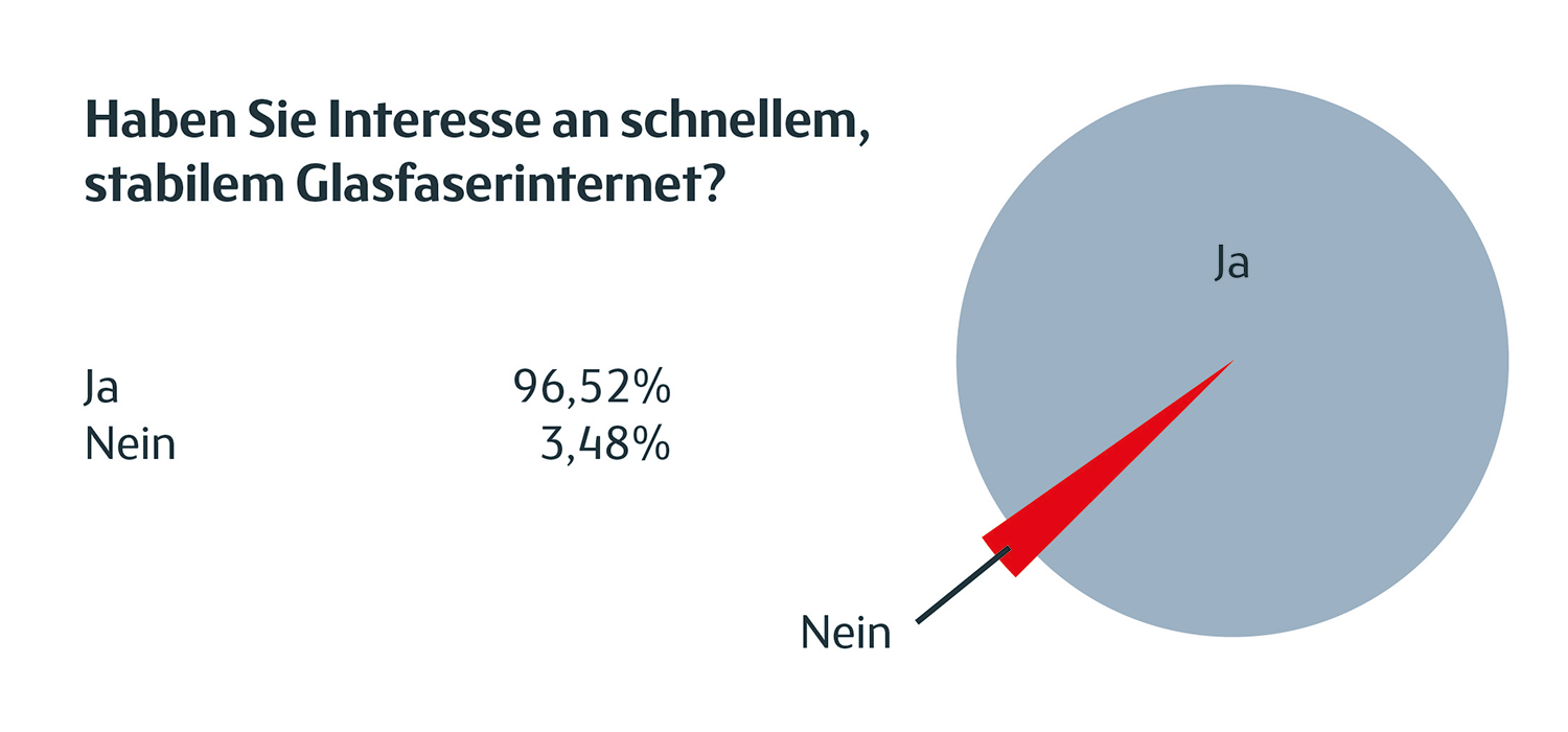 Über 96 % der Teilnehmer an der Umfrage haben großes Interesse an einem schnellen und stabilen Glasfasernetz.