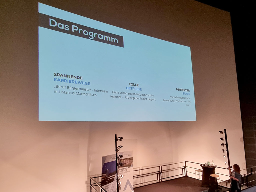 Bürgermeister Marcus Martschitsch unterstützte den Vormittag, indem er als Interviewgast über seinen beruflichen Werdegang erzählte. Dabei machte er deutlich, dass der Weg durch das Berufsleben oft nicht geradlinig ist, sondern viele interessante Möglichkeiten bietet.